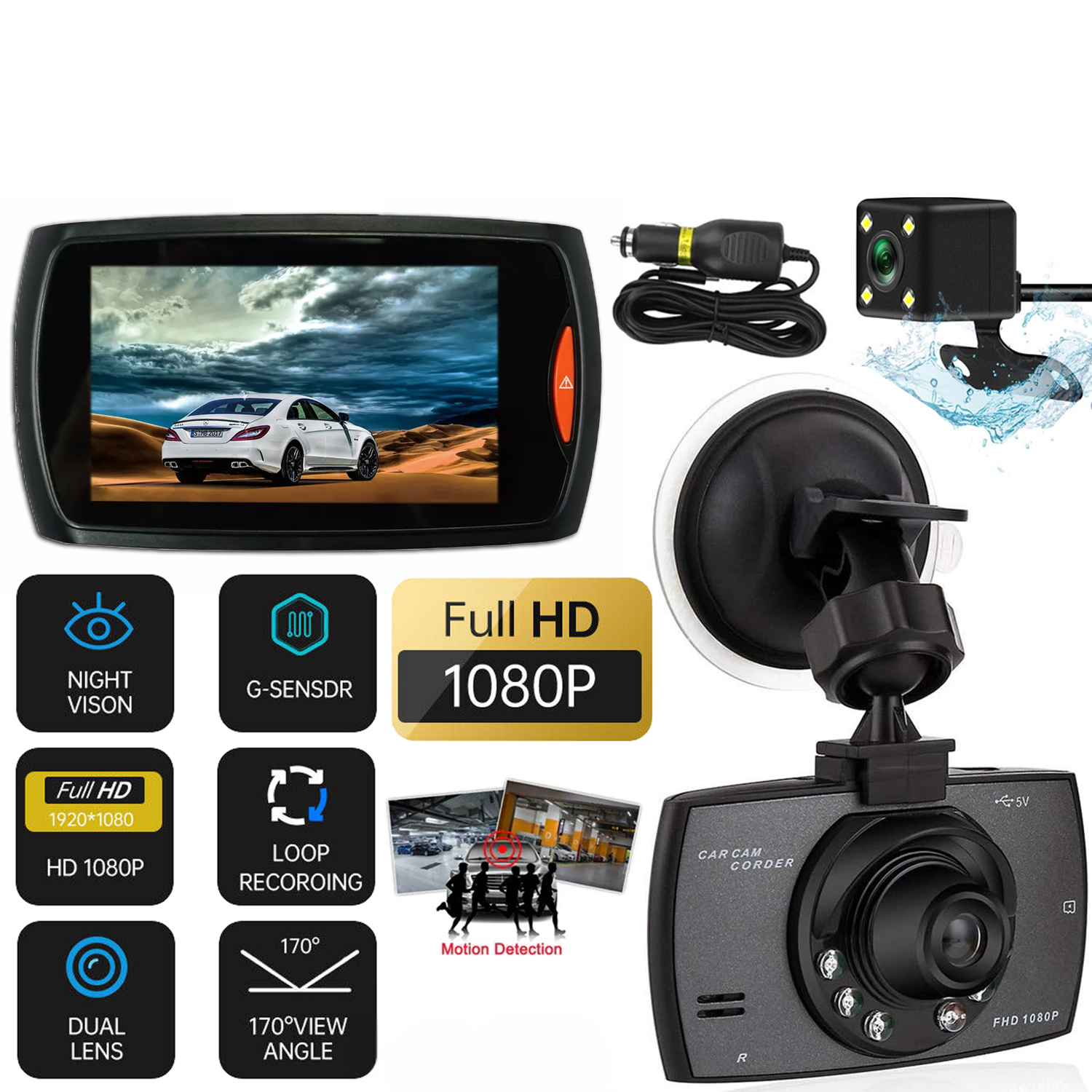 🚗 2.7" Full HD 1080P Dual Dash Cam – Front & Rear Cameras, Night Vision, G-Sensor, Loop Recording