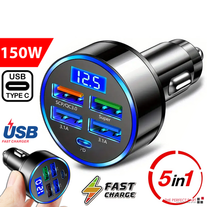Stay fully charged on the go with this compact 5-port car charger. Designed for families, rideshare drivers, and road warriors, it powers iPhones, Androids, tablets, dash cams, and more—all at once.