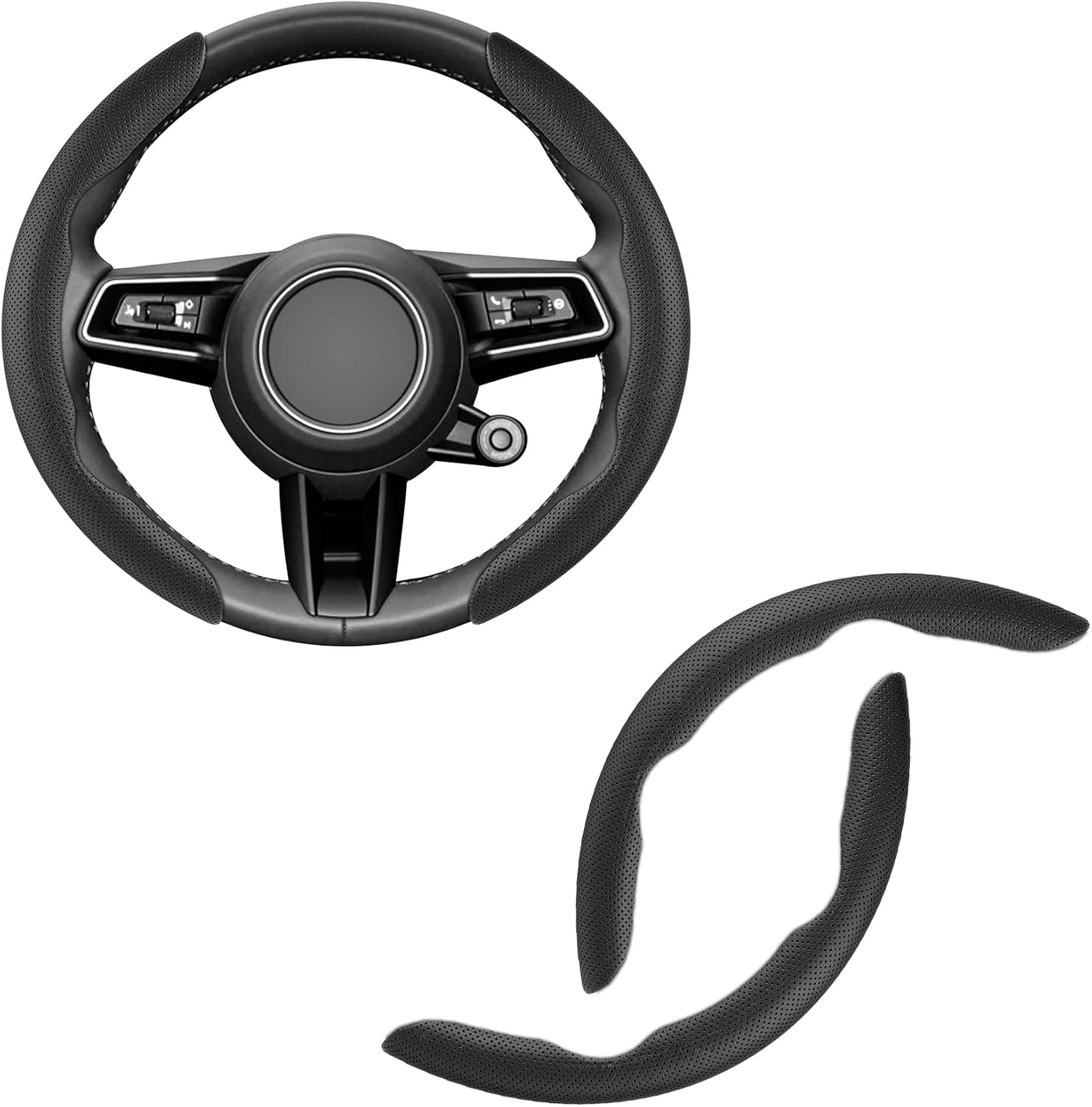 🖤 Black Nappa Leather 2-Piece Steering Wheel Cover – Universal Fit