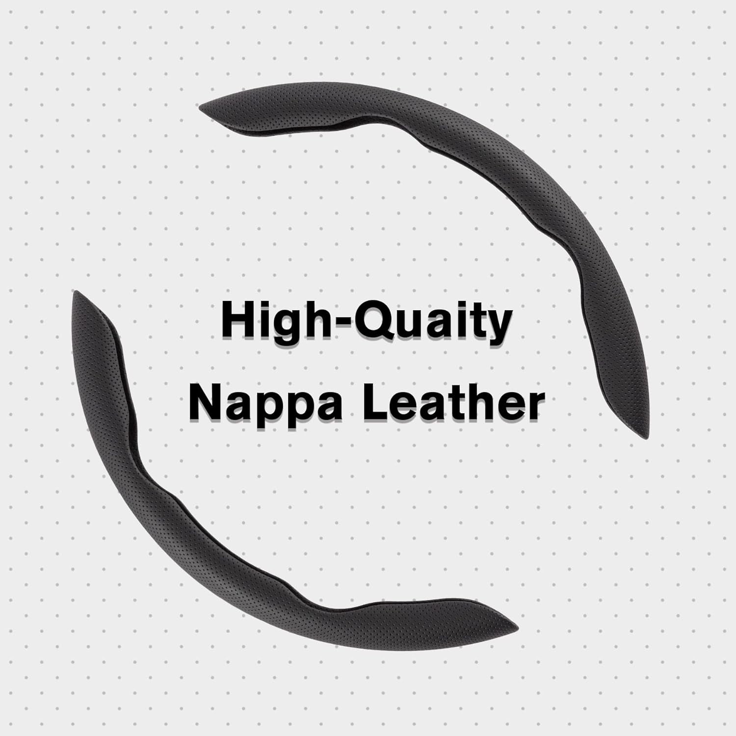 Black Nappa Leather 2 Piece Steering Wheel Cover Universal Fit for Most Cars