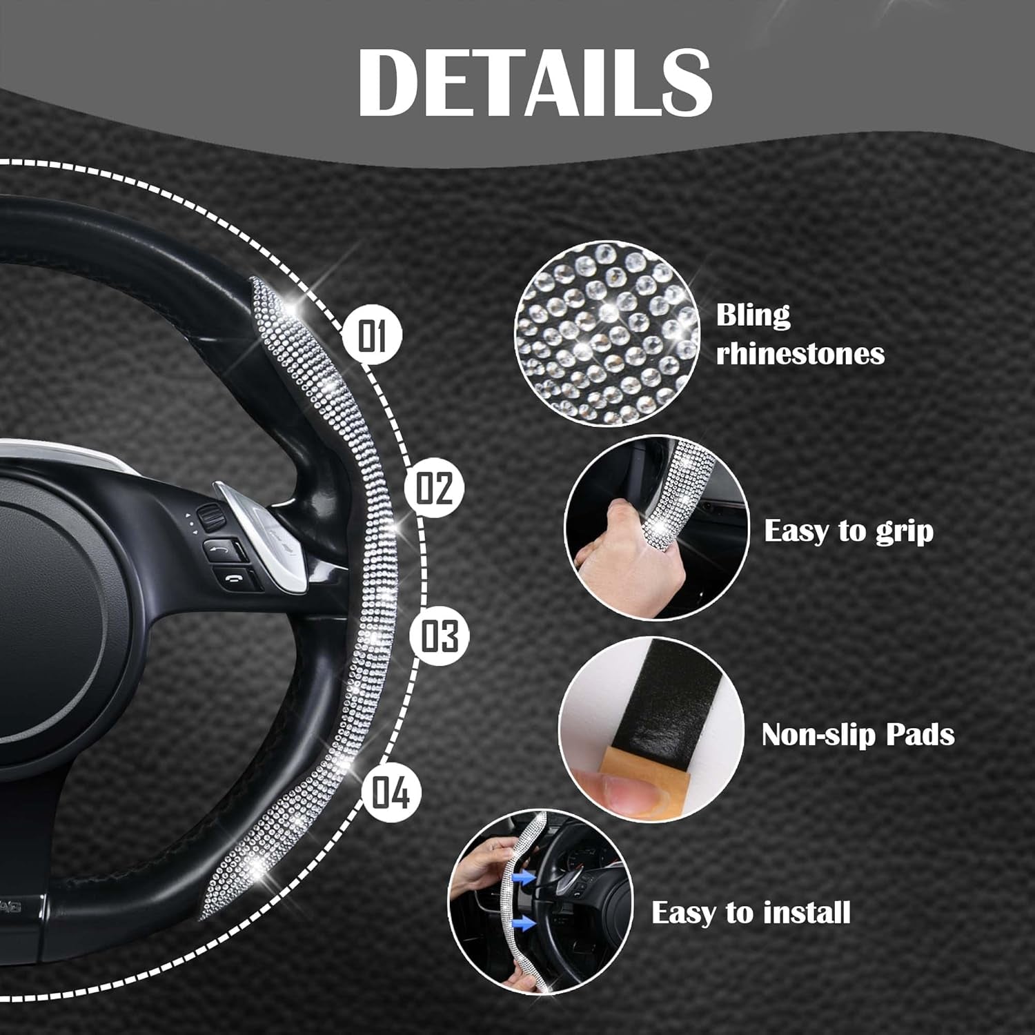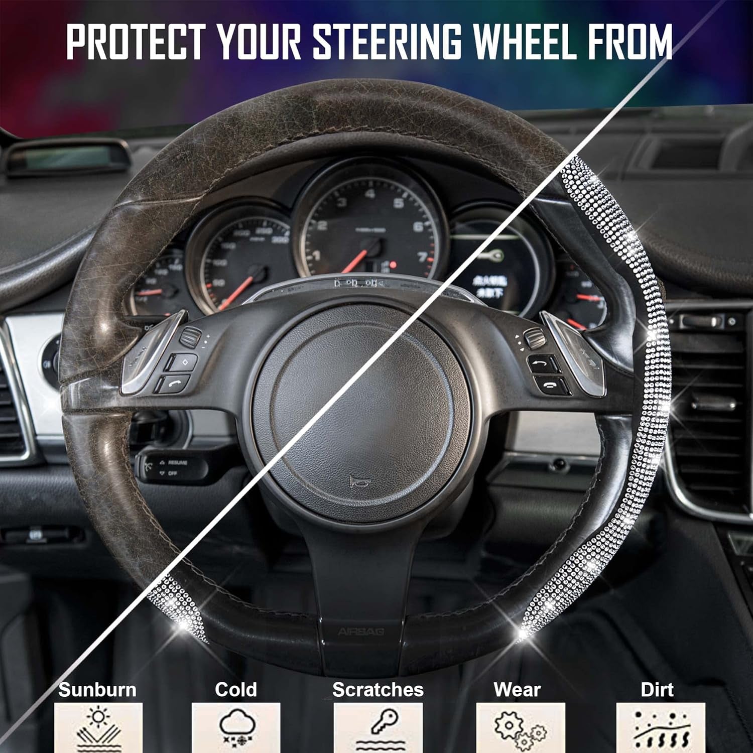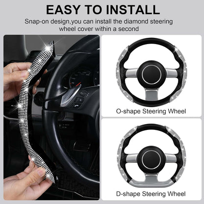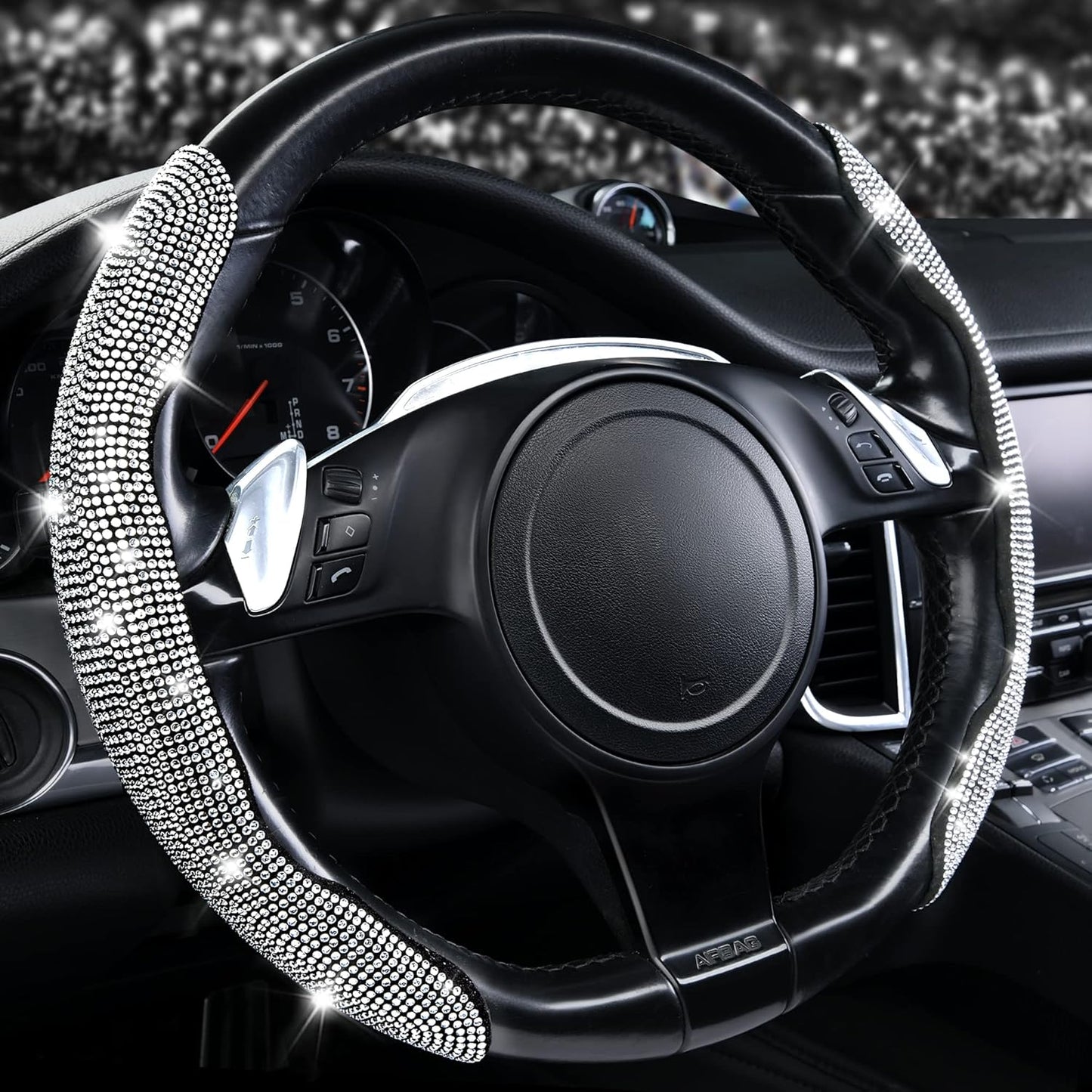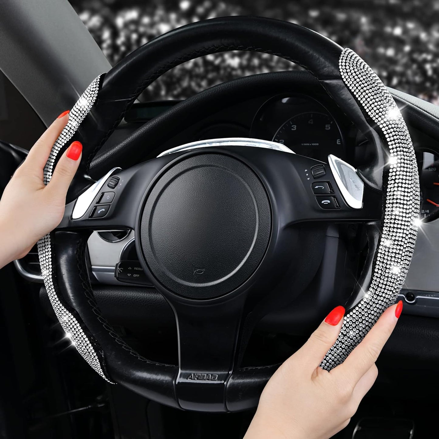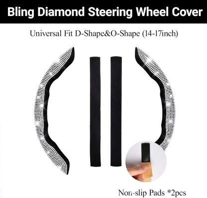 ✨ 2-Piece Bling Diamond Steering Wheel Cover – Universal Fit (14”–16”)