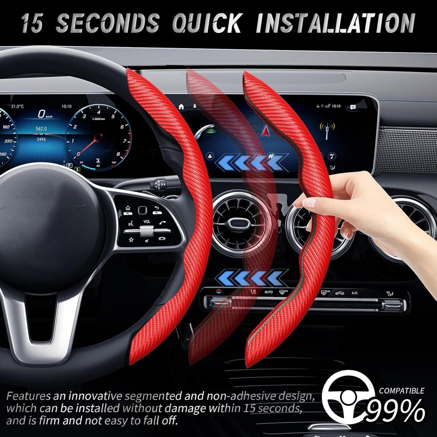 🔥 Red Carbon Fiber Steering Wheel Cover – Universal Fit (14.5"–15")