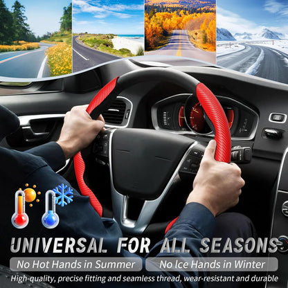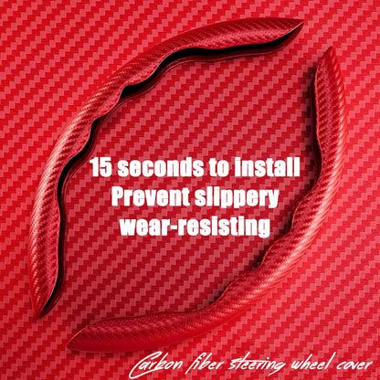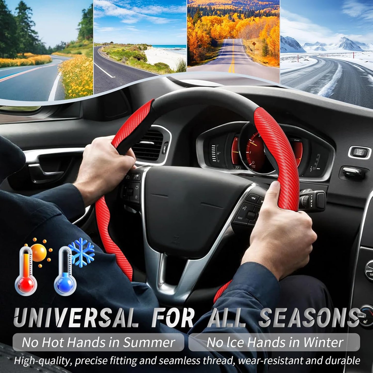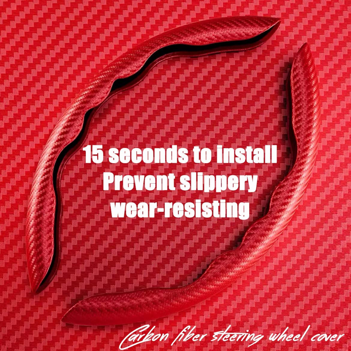 Red Carbon Fiber Car Steering Wheel Cover Universal Fit for Most Cars with Non-Slip Lining