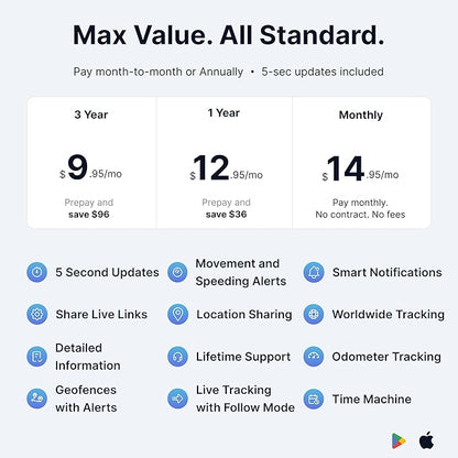 Reliable worldwide tracking with SUPER SIM network switching. Just update network settings in the app before international travel.