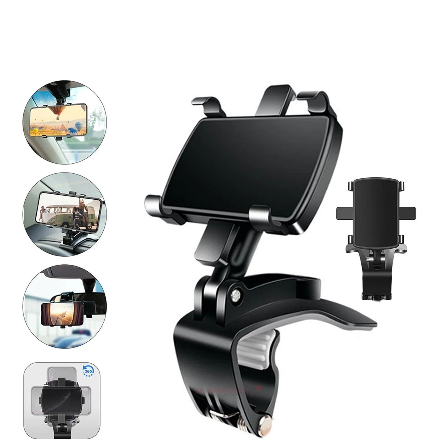 🚗 Universal Car Dashboard Phone Mount – 360° Rotation, Clamp-On Design