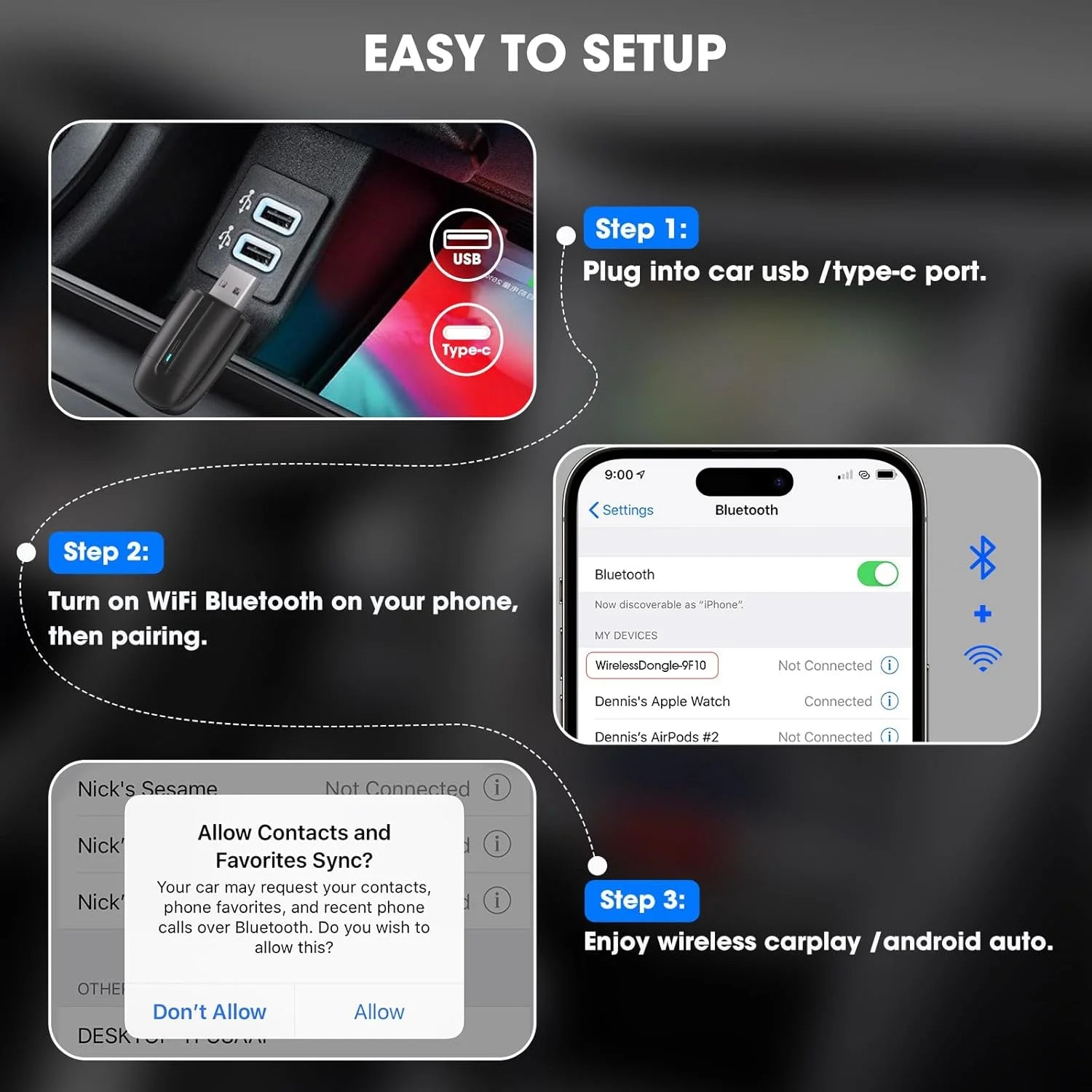 Say goodbye to cables and hello to convenience with the Mini 2-in-1 Wireless CarPlay & Android Auto Adapter. Designed for modern drivers, this compact device effortlessly converts your existing wired CarPlay or Android Auto system into a fully wireless experience—no extra apps, tools, or installation required.