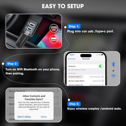 Make every drive smarter, cleaner, and more connected—upgrade to the Mini 2-in-1 Wireless CarPlay Adapter and enjoy the freedom of going wireless!