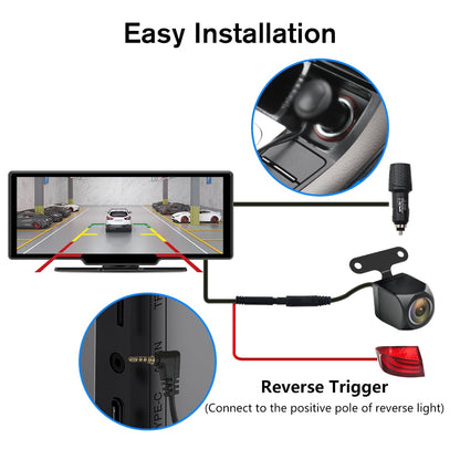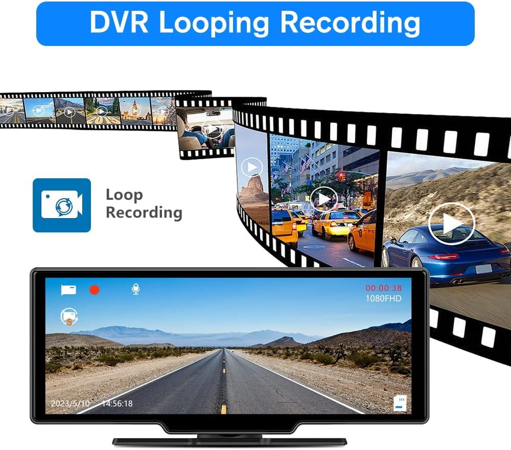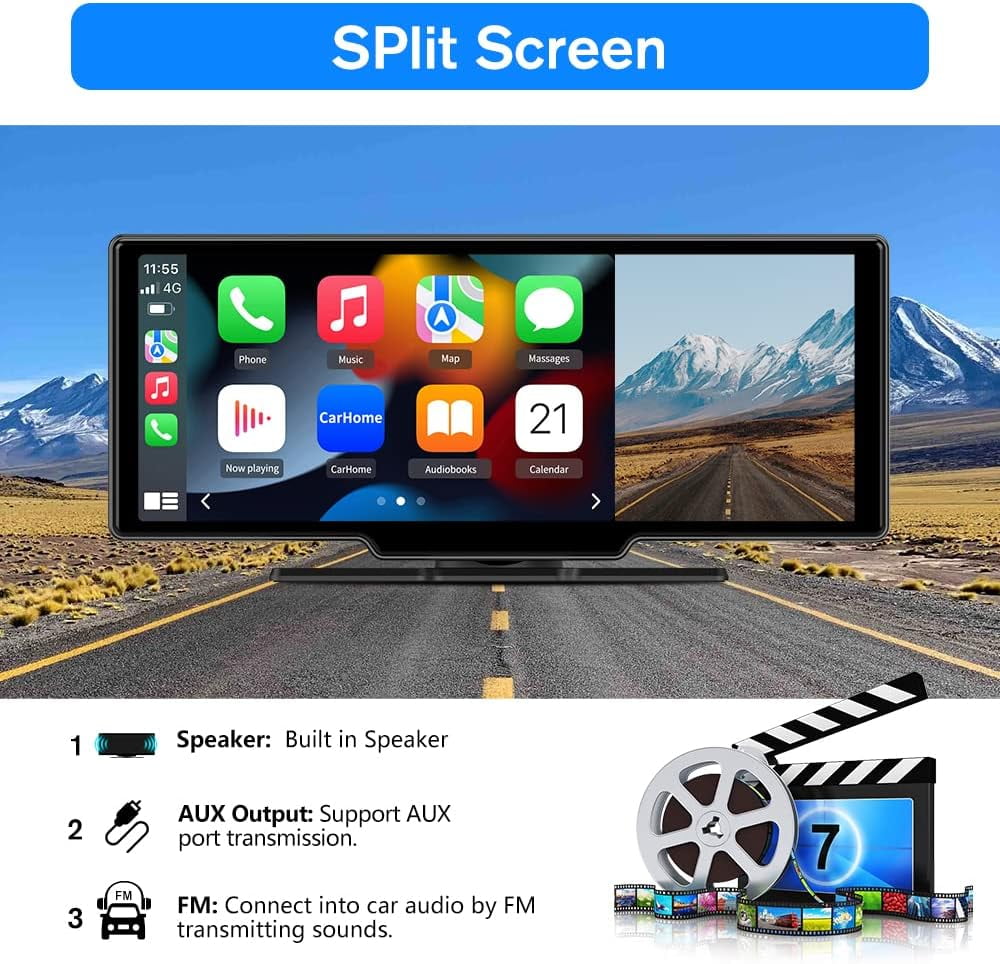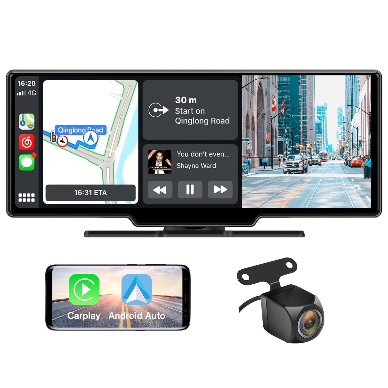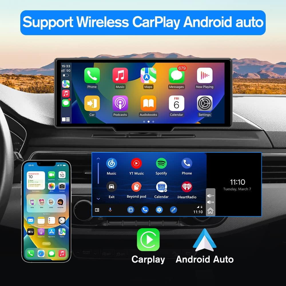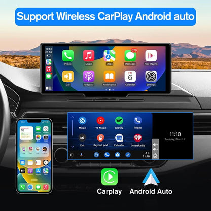 Portable 10.26" Touch Screen Wireless CarPlay Android Auto Bluetooth Unit with 1080P Dash Cam